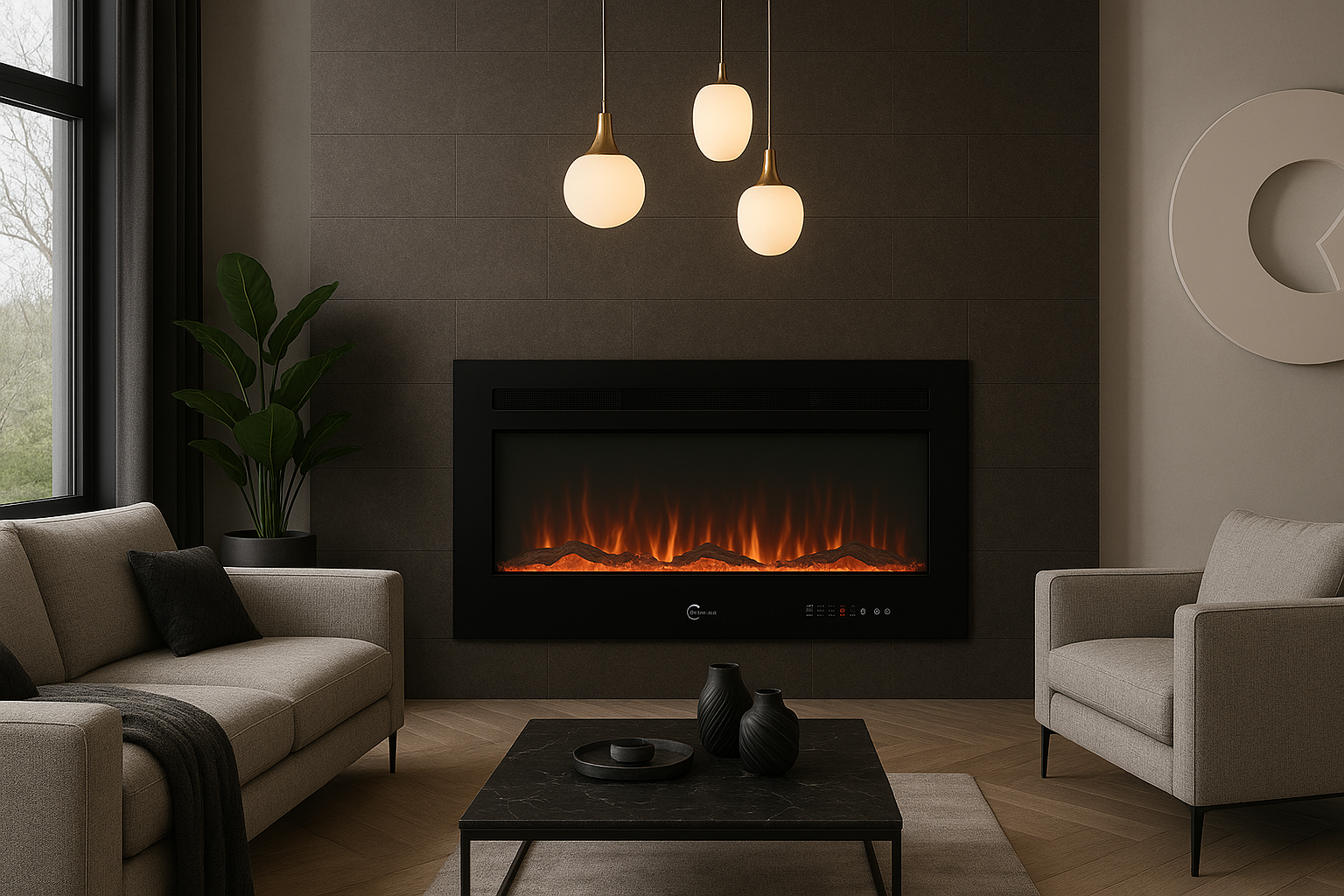 La cheminée Valtaia Plat associe design premium, technologie LED avancée et confort thermique intelligent.